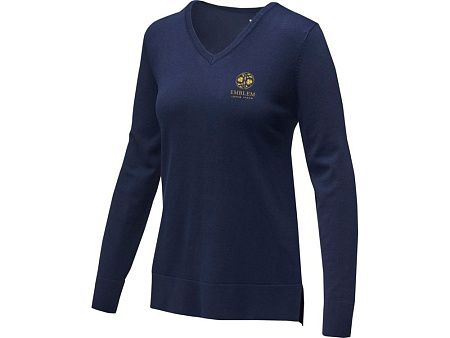 Женский пуловер Stanton. V-образный вырез. Воротник из гладкого трикотажа. С манжетами из гладкого трикотажа в рубчик. С подшивкой из гладкого трикотажа в рубчик. Удлиненный задний подол с боковыми прорезями. Атласная лента на воротнике Основная этикетка нанесена на ткань методом термоприклеивания без неудобных пришитых ярлыков. Придающие форму швы и зауженная талия для ровного прилегания.