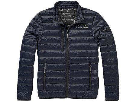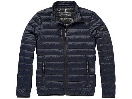 Легкая куртка Scotia. Стандартный покрой. Ткань не пропускает пух. Карманы для рук и нагрудный на молнии. Карман на рукаве на молнии можно использовать для нанесения. Резинка на манжетах и внизу куртки. Ремешки на собачку (второй комплект в цвете антрацит). Внутренний противоветровой клапан и защита подбородка. Ткань дышащая, ветронепроницаемая и влагоотталкивающая. Отражающий лого сзади. Легкий пуховик. Ткань из 100% нейлона с матовым и блестящим водоотталкивающим покрытием, 20D. 80% пух и 20% перо. 115 г/м².