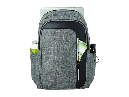 Рюкзак Vault для ноутбука 15.6" с защитой RFID. Изящный, современный рюкзак для ноутбука 15,6 " с большим передним карманом на молнии с карабином для ключей, и скрытым карманом с защитой RFID, чтобы защитить ваши карточки и паспорт от кражи личных данных. Большое основное отделение вмещает ноутбук 15,6" и специальный карман для IPad или планшета. Плотная спинка. Передняя вертикальная молния разработана, чтобы дать вам быстрый доступ к переднему карману. 2 дополнительных боковых кармана для большего места, регулируемые, мягкие ремни рюкзака позволят прикрепить к ним дополнительные аксессуары. Ручка вверху и стропа для крепления к чемодану. 600D полиэстер с акцентами из ПУ винила.