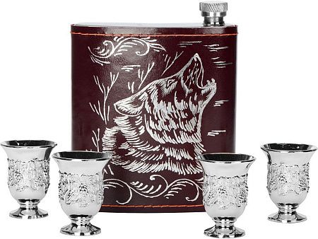 кейс, стопка 40мл- 4шт (d4,3 х 5,5 см), фляга- 500мл (16 х 12,7 х 4,5 см )