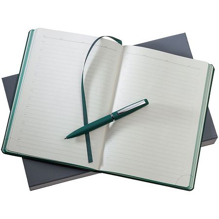 ежедневник - искусственная кожа; ручка - металл; покрытие софт-тач; коробка - картон