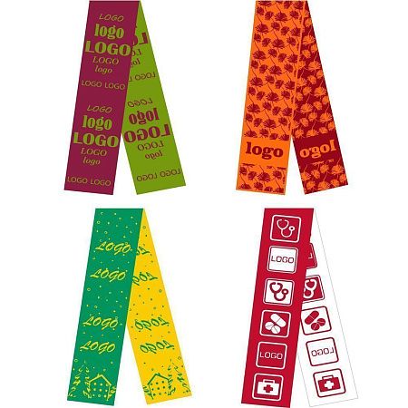 Шарф с вывязанным логотипом и индивидуальным рисунком в фирменной цветовой гамме.