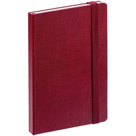 Ежедневник с твердой обложкой, выполнен из материала LaFite, красный РР, дополнен резинкой и ляссе в цвет обложки.