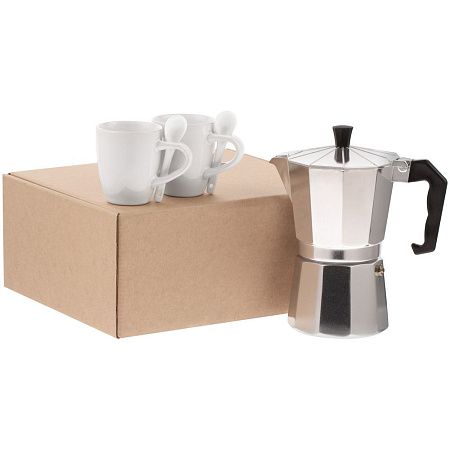 кофеварка - алюминий, пластик; кружка - каменная керамика
