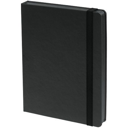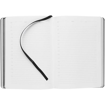 Ежедневник с твердой обложкой, выполнен из материала Latte, серый СС, обрез серого цвета, дополнен резинкой и ляссе серого цвета.