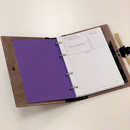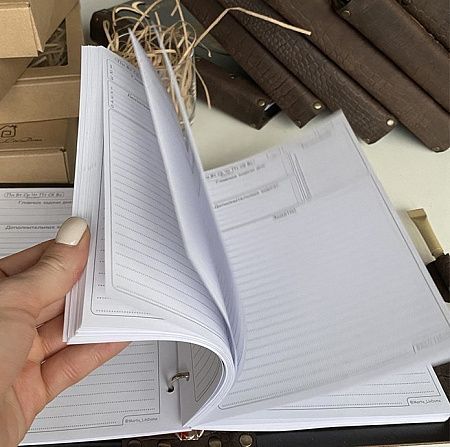 - Листы ежедневника можно менять бесконечно, благодаря разъемному кольцевому механизму.