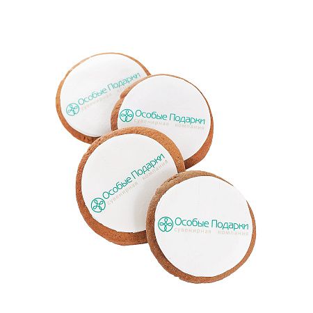 Состав: мука пшеничная в/с, масло сливочное, сахар-песок, мед, сметана, цедра апельсиновая, корица, имбирь. На печенье размещается логотип пищевыми чернилами на сахарной мастике.