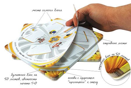 Коврик для мыши с отрывным блоком - удобный и практичный настольный сувенир, который постоянно находится перед глазами. На коврик можно записывать любую информацию.
