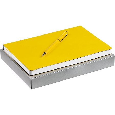 ежедневник - искусственная кожа; ручка - пластик, металл; коробка - картон