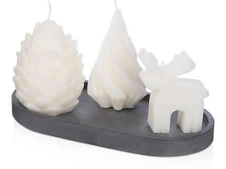 В набор входят три свечи на подставке — неотъемлемые символы Нового года и Рождества - это сосновая шишка, рождественский олень и, конечно же, елка, как главный символ нового года!