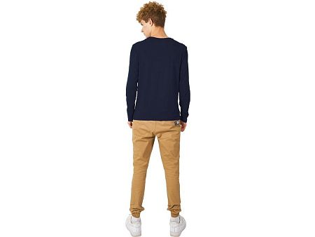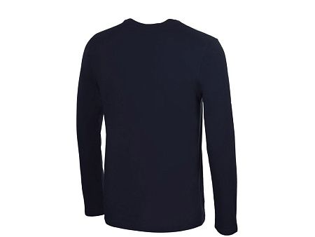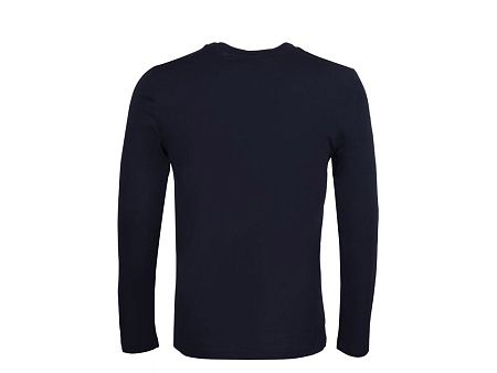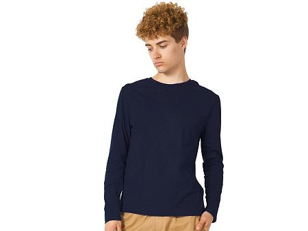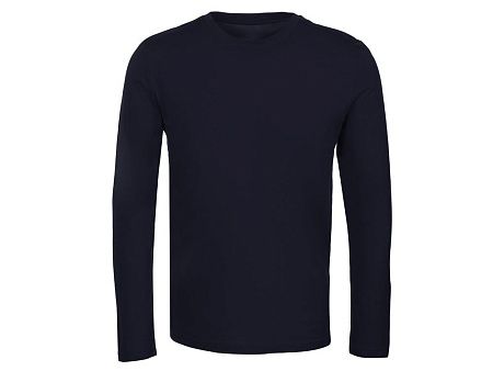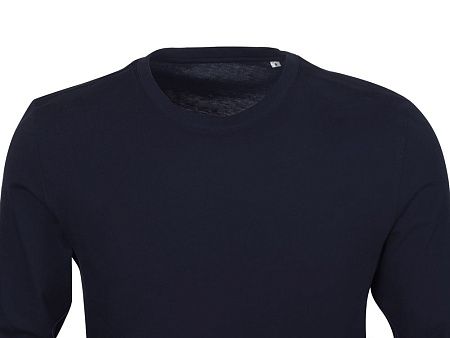Футболка с длинным рукавом комфортной посадки с боковыми швами. Горловина обработана рибом 1х1 и тесьмой по спинке. Футболка выполнена из хлопкового джерси.