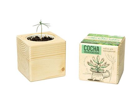 деревянный куб из массива сосны 8 х 8 х 8 см, стаканчик бумажный, грунт, семена, вермикулит, шубер