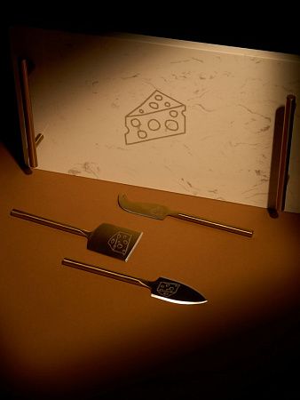 ножи - нержавеющая сталь, 3cr13; доска - камень, кварцевый, ручки — нержавеющая сталь 201