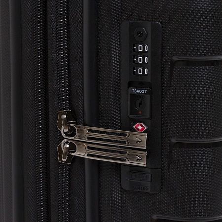 - Чемодан с 2 отделениями: одно из них с фиксирующими ремнями и сетчатой шторкой на молнии, второе — с разделителем на молнии