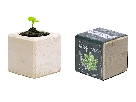 деревянный куб из массива сосны 8 х 8 х 8 см, стаканчик бумажный, грунт, семена, вермикулит, шубер