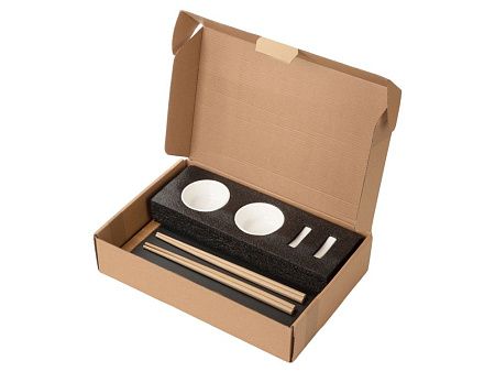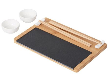 подставка из бамбука и сланца, керамическая соусница 2 шт., набор палочек для суши 2 шт., подставки для палочек 2 шт.