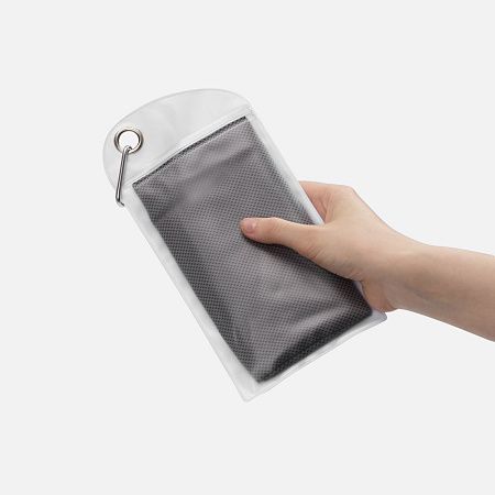полотенце - полиэстер, 45%, нейлон 55%, плотность 160 г/м²; сумка-чехол - ПВХ