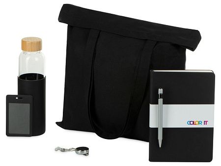 шоппер, блокнот, ручка, чехол для бейджа, ретрактор, бутылка для воды