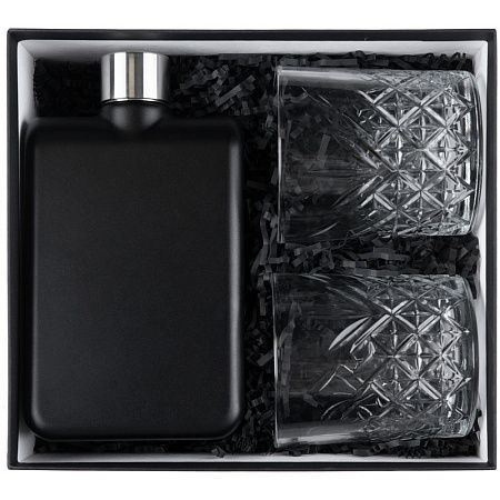 фляга - нержавеющая сталь, 304; стаканы - стекло; коробка - переплетный картон, бумага malmero