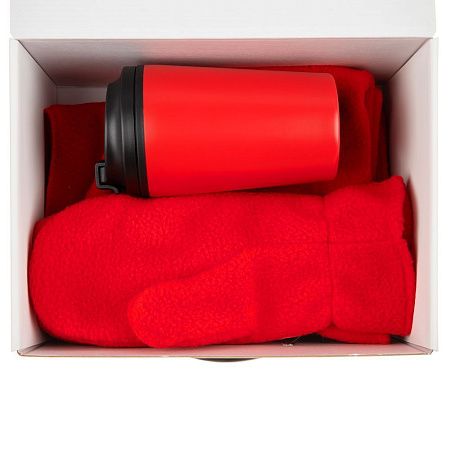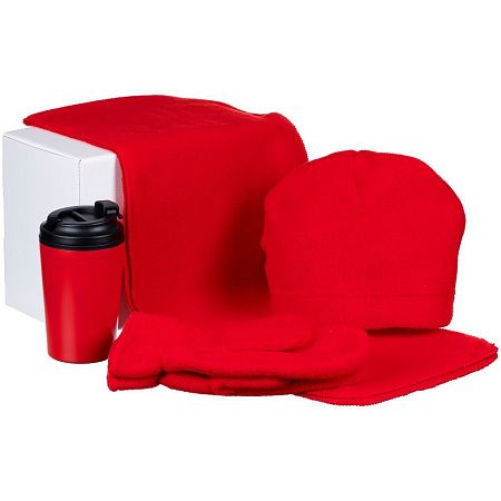 шапка, шарф, варежки - полиэстер 100%; флис; термостакан - нержавеющая сталь, полипропилен