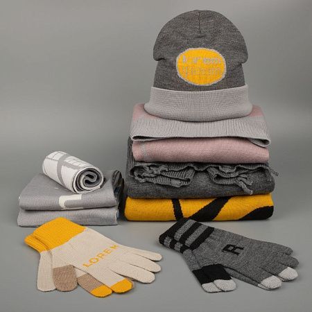 Модель: цельновывязанные бесшовные перчатки с эластичной манжетой и жаккардовым узором в 2-3 цвета. Три пальца: средний, указательный, большой — вяжутся с использованием токопроводящей нити. Манжета может быть полосатой (только горизонтальные полосы 1-2 цветов, без узора и логотипа).