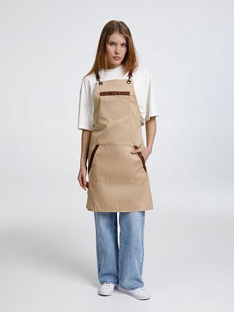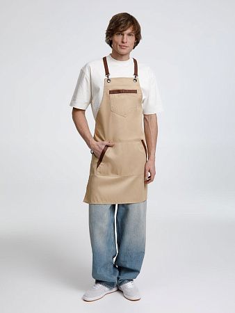фартук - полиэстер 65%, хлопок 35%, плотность 240 г/м²; лямки - искусственная кожа; фурнитура - металл