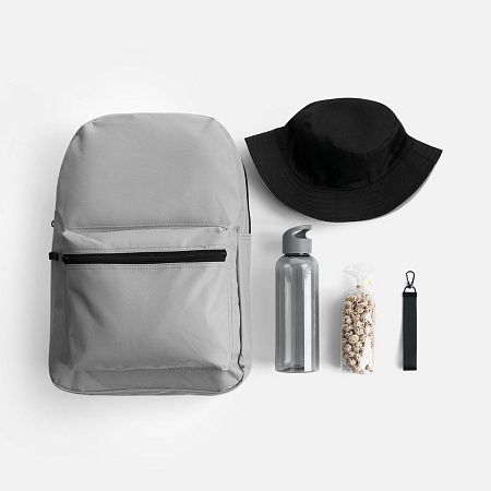 рюкзак - полиэстер, 600d; панама - хлопок 100%, плотность 220 г/м²; бутылка - пластик, ПЭТ; ремувка - полиэстер 100%; металл
