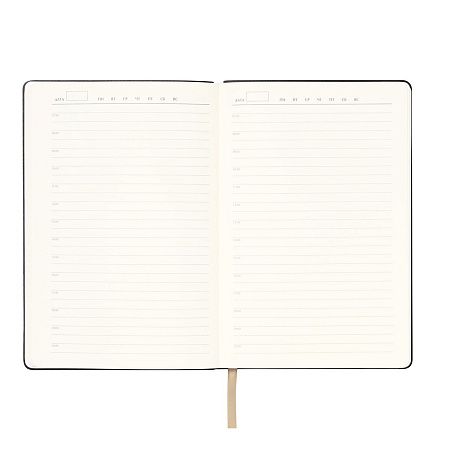 Матовое покрытие Soft Touch с деликатным пудровым эффектом подарит неповторимое тактильное удовольствие. А кремовые форзац, нахзац и срез блока создадут гармоничное обрамление для гладких шелковистых страниц кремового оттенка. Элегантное атласное ляссе поможет вам легко ориентироваться в записях.