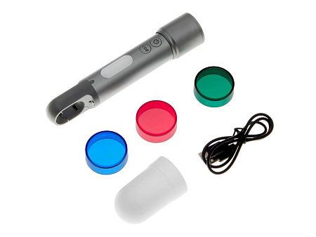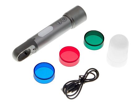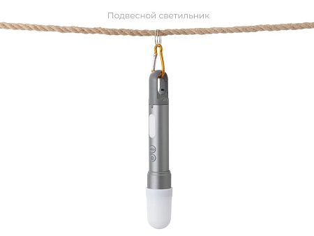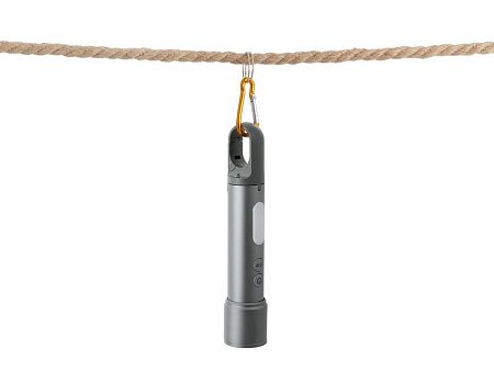 Для удобства использования предусмотрен прочный встроенный карабин. Фонарь прост в управлении: все функции доступны через две кнопки на корпусе. Комплект поставки включает зарядный кабель USB Type-C, инструкцию и сменные цветные насадки. Белая рассевающая насадка превращает фонарь в удобный подвесной светильник.