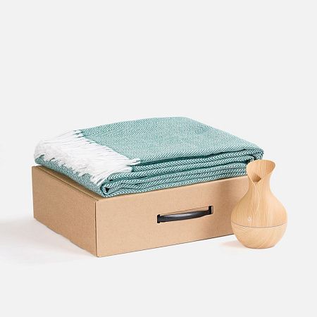 плед - шерсть, 15%; хлопок, 5%; полиэстер, 60%; акрил, 20%, плотность 200 г/м²; увлажнитель - пластик; коробка - картон