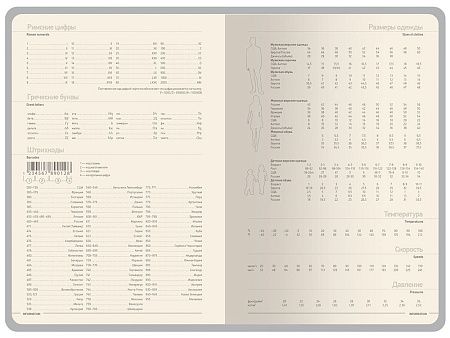 Недатированные страницы в серую линейку имеют отдельное место для проставления числа месяца и дня недели. Справочный блок на 17 страницах содержит полезную информацию из различных областей.