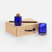 флакон, подсвечник - стекло, палочки из файбера; свеча - воск; коробка - микрогофрокартон