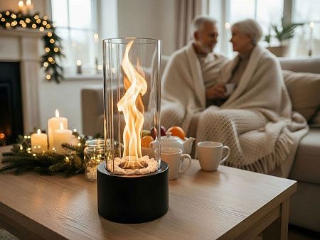 стеклянные перегородки из закаленного стекла (3 шт.), металлическая заглушка, металлическое основание, емкость для биотоплива