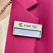 Популярность набирают магнитные крепления. Табличку легко прикрепить или снять, и она не оставляет следов на одежде.