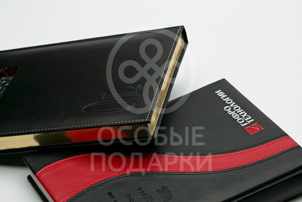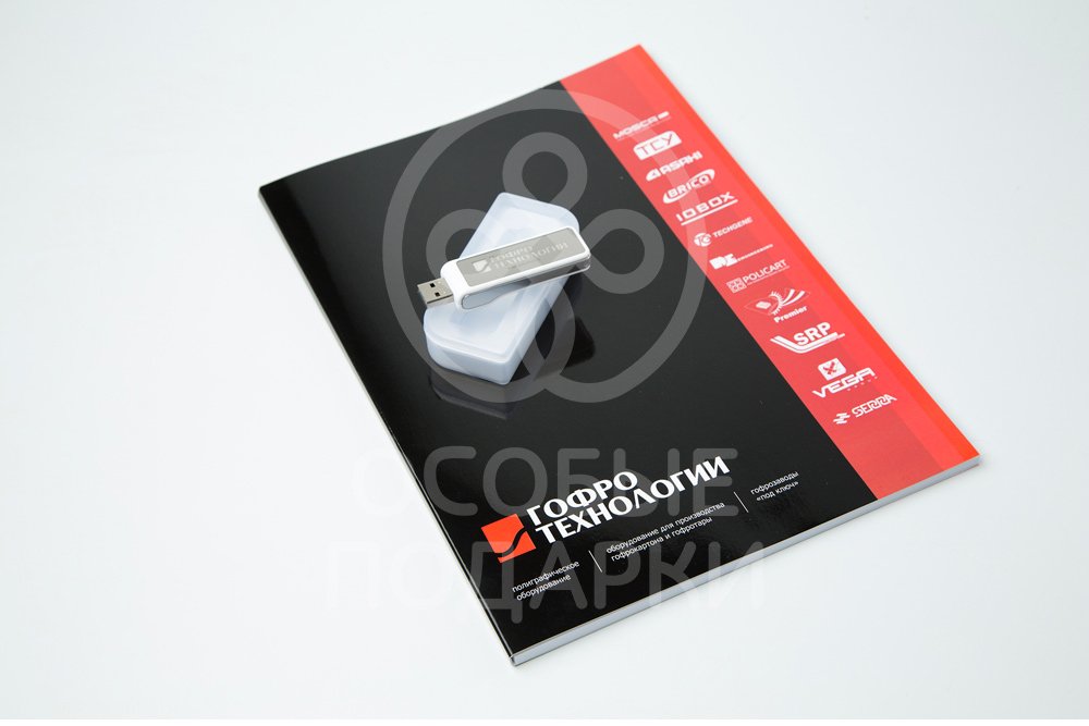 Для торговой компании были сделаны элегантные ежедневники на 2015 год с красной вставкой с позолоченным срезом, также компания сделала заказ на элегантные флешки в форме ключа.