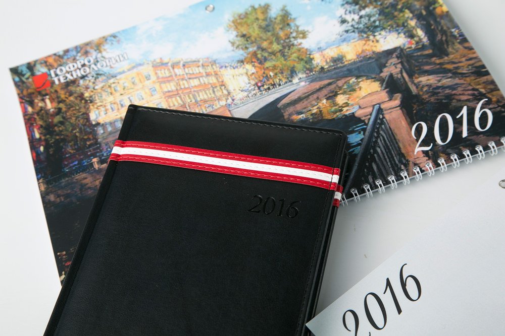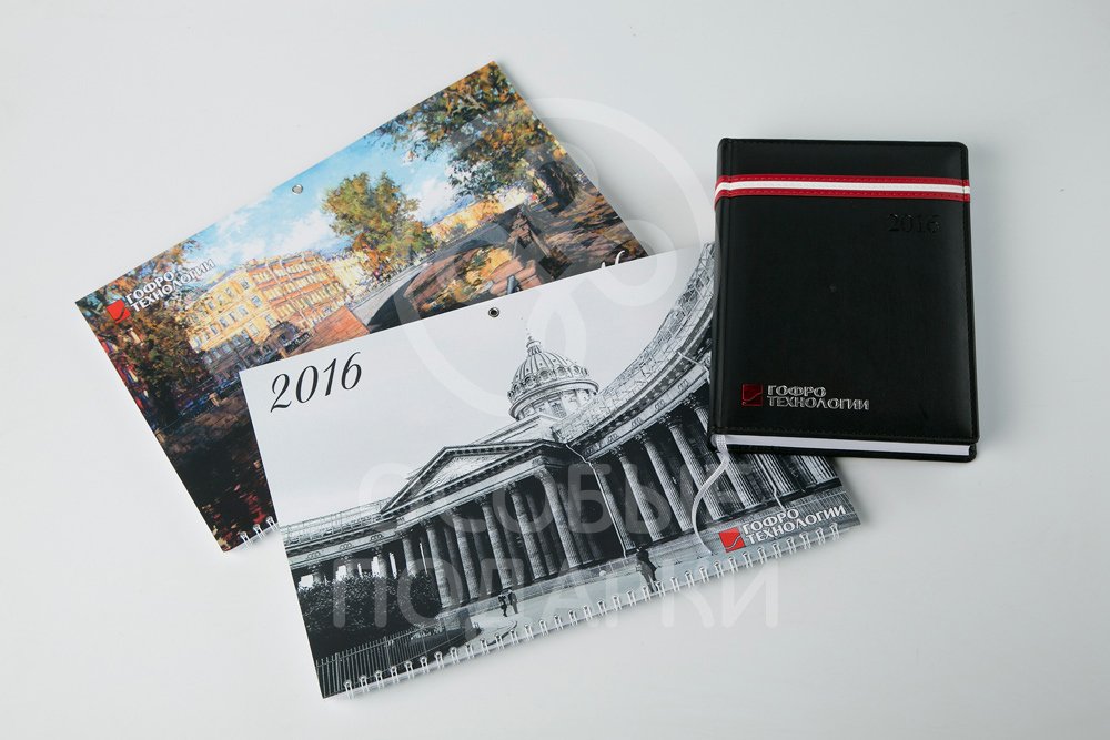 К 2016 году выполнены модные ежедневники фирменных цветов компании и красивые календари с видами Санкт-Петербурга.