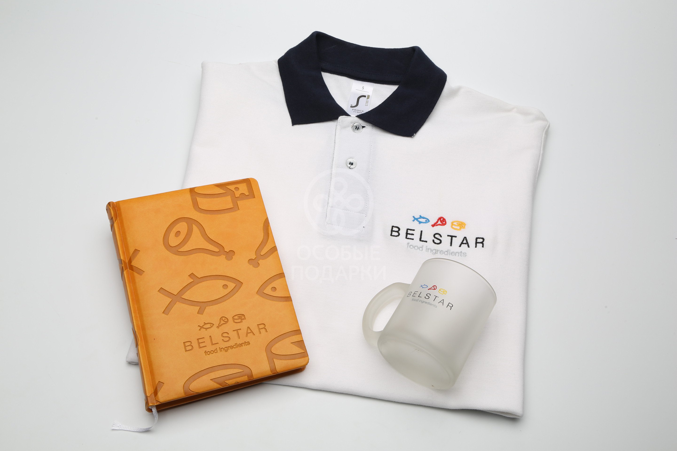 Компания BELSTAR сделала заказ на рубашки поло, ручки и ежедневники, на которых мы отпечатали оригинальный логотип компании и упаковали в фирменные пакеты.
