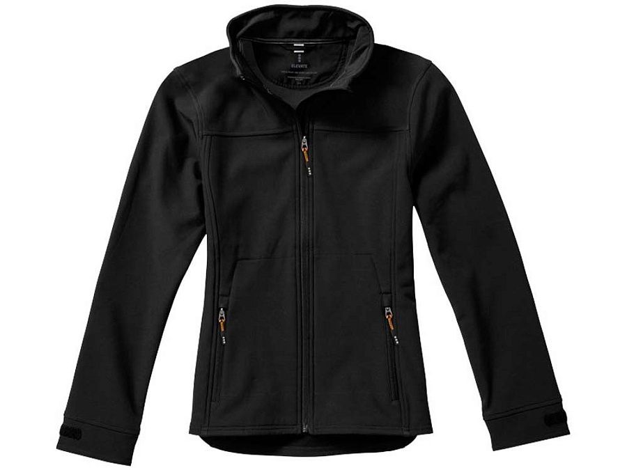Женская куртка софтшел Langley. Стандартный покрой. Отстегивающийся капюшон на шнурках со стопперами. Обратная молния по центру и на карманах для рук. Регулируемые манжеты на липучках. Отражающий лого сзади. Водонепроницаемый 5000 мм. Дышащий 3000 мм. Ткань эластична в четырех направлениях. Ветронепроницаемая. Ремешки на собачку (второй комплект в цвете антрацит). Ткань из 90% полиэстера и 10% эластана, склеенного со 100% полиэстеровым микрофлисом. 300 г/м².