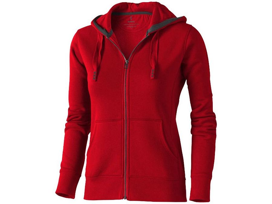 Женский свитер Arora с капюшоном и застежкой-молнией на всю длину. Стандартный покрой. Резинка 2х2 на боковых вставках, поясе и манжетах. Карман кенгуру. Мужская и женская модели с завязками на капюшоне. Подкладка внутри капюшона. Атласная лента внутри горловины. Принт лого сзади в тон изделия. Серебристые люверсы с лого. Ворсистый внутри для мягкости, тепла и комфорта. Трикотаж: 80% хлопок и 20% полиэстер, чесаная внутренняя сторона. 300 г/м².