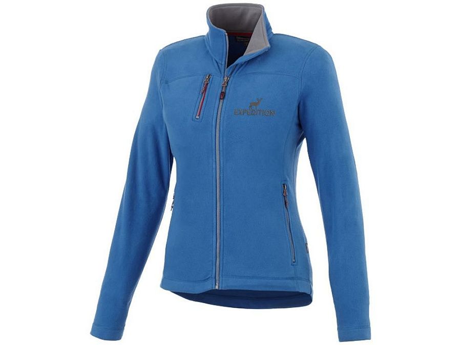 Женская микрофлисовая куртка Pitch. Карманы для рук на молнии. Нагрудный карман на молнии. Внутренняя сторона воротника в контрастном цвете. Внутренний выход для медиапроводов. Обратная контрастная молния спереди. Молния легкого скольжения. Двухцветная лента по линии окантовки горловины. Тканая -флажок сбоку. 100% полиэстер микро флис. 200 г/м².