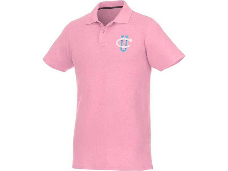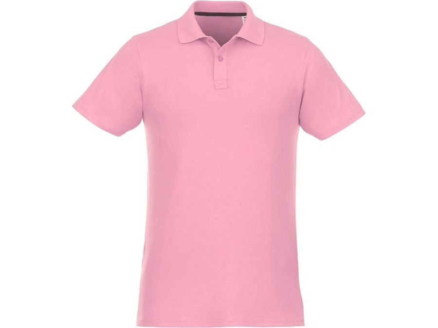 Мужское поло Helios с коротким рукавом. Отрезной-отрывной ярлык для комфорта. Воротник гладкой вязкой в рубчик. Планка с двумя пуговицами. Двойная строчка на воротнике и внизу изделия. Пуговицы в цвет изделия. Полоска на горловине в контрастном цвете. Трикотаж Piqué, 100 % хлопок. 180 г/м².