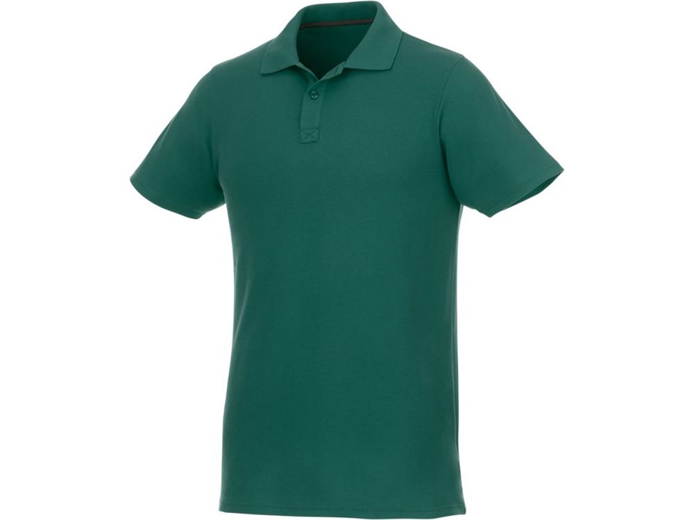 Мужское поло Helios с коротким рукавом. Отрезной-отрывной ярлык для комфорта. Воротник гладкой вязкой в рубчик. Планка с двумя пуговицами. Двойная строчка на воротнике и внизу изделия. Пуговицы в цвет изделия. Полоска на горловине в контрастном цвете. Трикотаж Piqué, 100 % хлопок. 180 г/м².