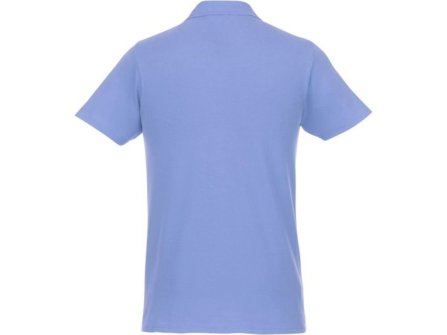 Мужское поло Helios с коротким рукавом. Отрезной-отрывной ярлык для комфорта. Воротник гладкой вязкой в рубчик. Планка с двумя пуговицами. Двойная строчка на воротнике и внизу изделия. Пуговицы в цвет изделия. Полоска на горловине в контрастном цвете. Трикотаж Piqué, 100 % хлопок. 180 г/м².