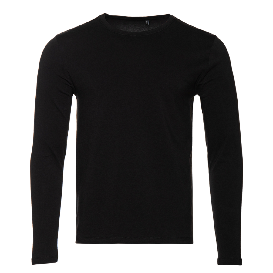 Универсальная футболка прямого силуэта с округлым воротом и длинным втачным рукавом. Плечевые швы и шов горловины усилены настрочной бейкой из основного полотна.