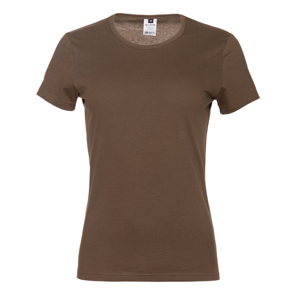 Женская футболка приталенного силуэта с округлым воротом и втачным рукавом.
