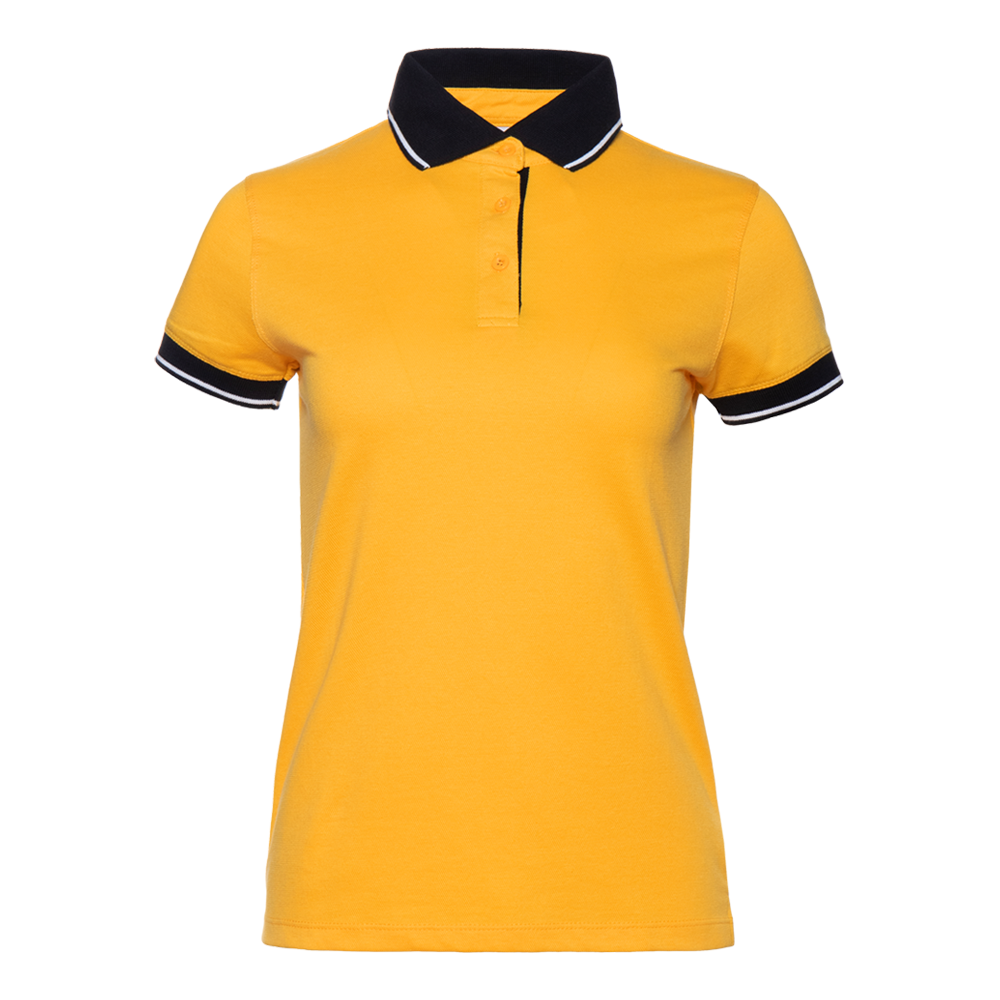 Женская рубашка поло приталенного силуэта с контрастным отложным воротником и манжетом, втачным коротким рукавом и застежку на пуговицы. Асимметричный крой гарантирует свободу движения и защиту спины от продувания ветром.