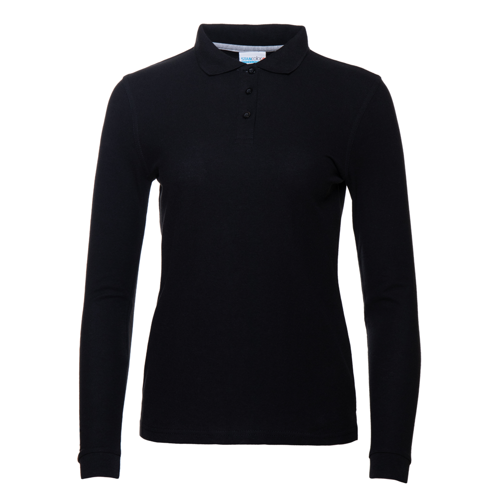 Женская рубашка поло приталенного силуэта с отложным воротником, длинным рукавом и застежкой на пуговицы.