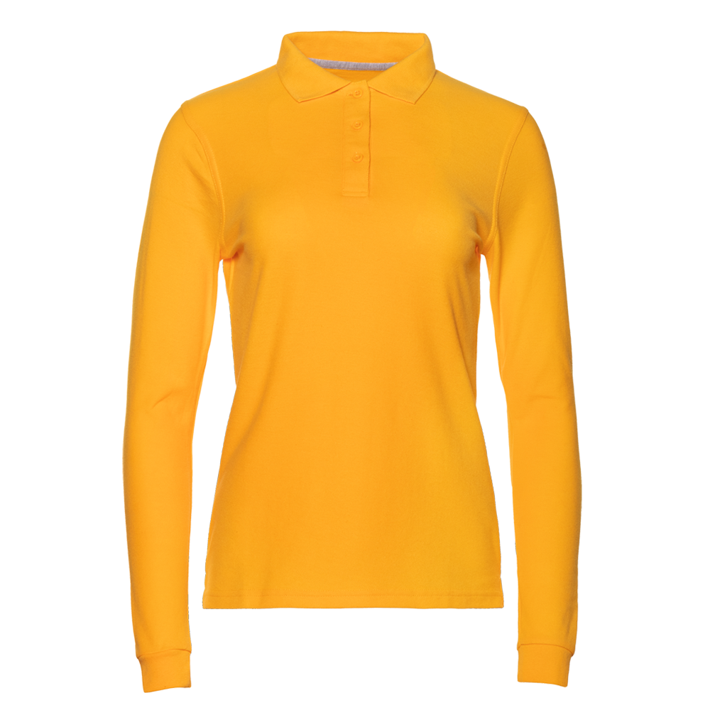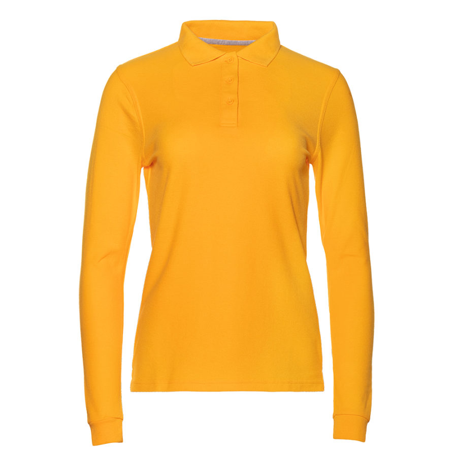 Женская рубашка поло приталенного силуэта с отложным воротником, длинным рукавом и застежкой на пуговицы.
