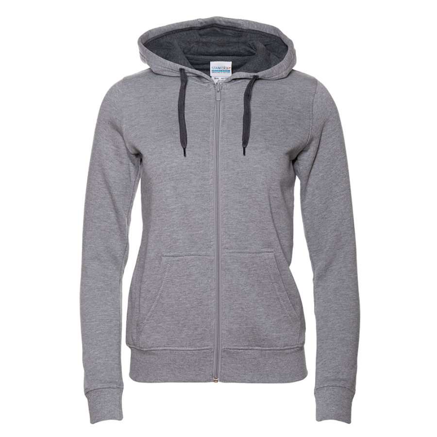 Женская толстовка приталенного кроя с капюшоном комфортной глубины, втачным рукавом, накладным карманом и застежкой на молнию в тон основному цвету. Для дополнительной защиты от холода ворот, манжет и низ изделия оформлены эластичной бейкой.