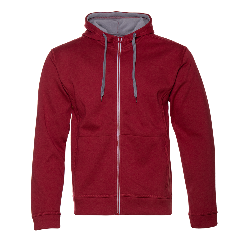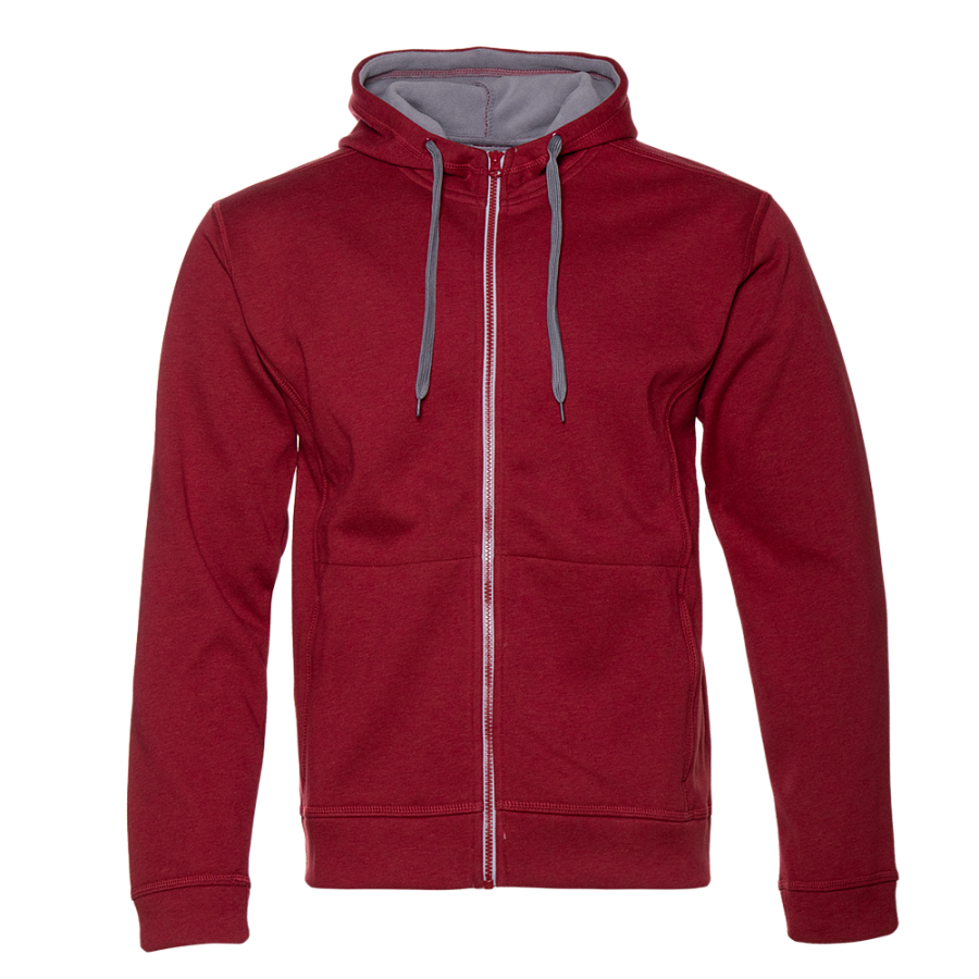 Мужская толстовка прямого силуэта с капюшоном комфортной глубины, втачным рукавом, прорезным карманов и застежкой на контрастную молнию. Капюшон дополнен плоским шнурком для регулировки прилегания, манжет и низ изделия выполнены из основного полотна.
